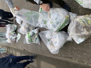 箇所によってはゴミが散乱していたり、同じ場所にいろいろなゴミが捨ててあったりと約1時間の活動で多くのゴミを拾いました。