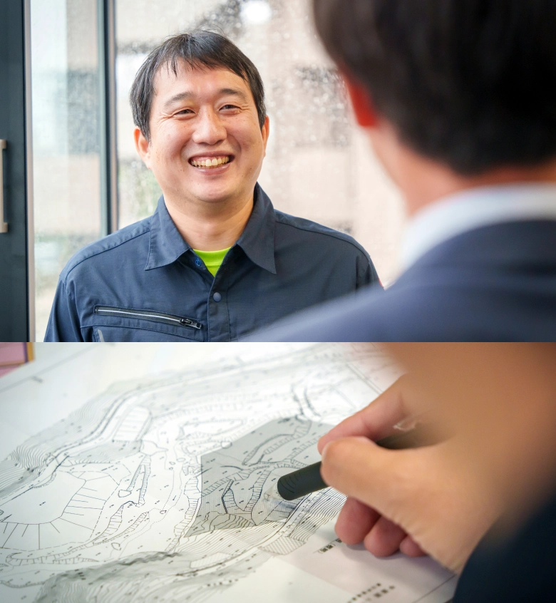 転機となったのは入社2~3年目。災害対応の最中に担当上司が入院し、業務を最後までやり遂げた経験がありました。責任は重かったですが、「やり切れた」という手応えが仕事観を変えました。翌年の台風災害対応では同じ発注者の方から測量・設計の相談をいただくようになり、「頼られる立場になってきたんだ」と実感しました。