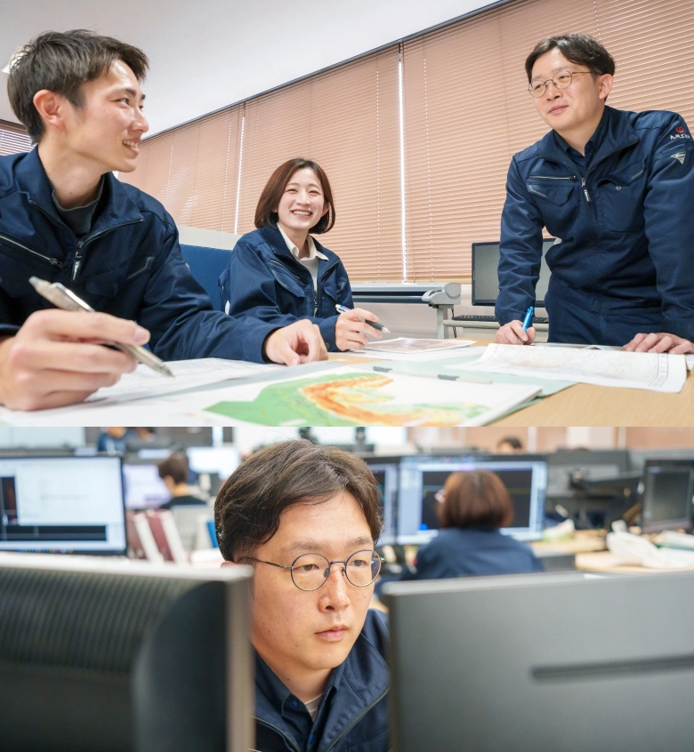 発注者との協議や照査対応を通じて、技術的根拠を分かりやすく説明する力も身につき、「自分の言葉で説明できる技術者」として成長できている実感があります。前職では業務が固定化しており、新しい技術を身につける機会が限られていたため、専門性と実践力を積み上げられている点が大きなやりがいです。